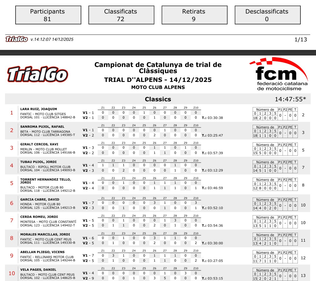 Alpens acull la 5a edició del Campionat de Catalunya de Trial de Clàssiques 2025